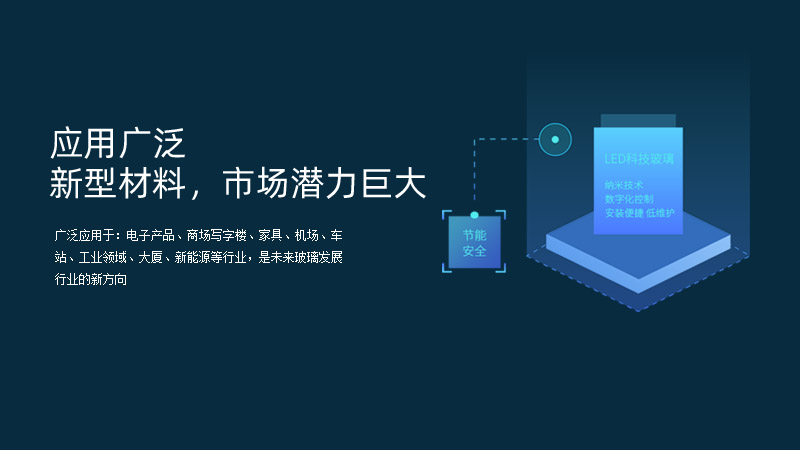 廣泛應用于:電子產(chǎn)品、商場寫字樓、家具、機場、車站、工業(yè)領(lǐng)域、大廈、新能源等行業(yè),是未來玻璃發(fā)展行業(yè)的新方向